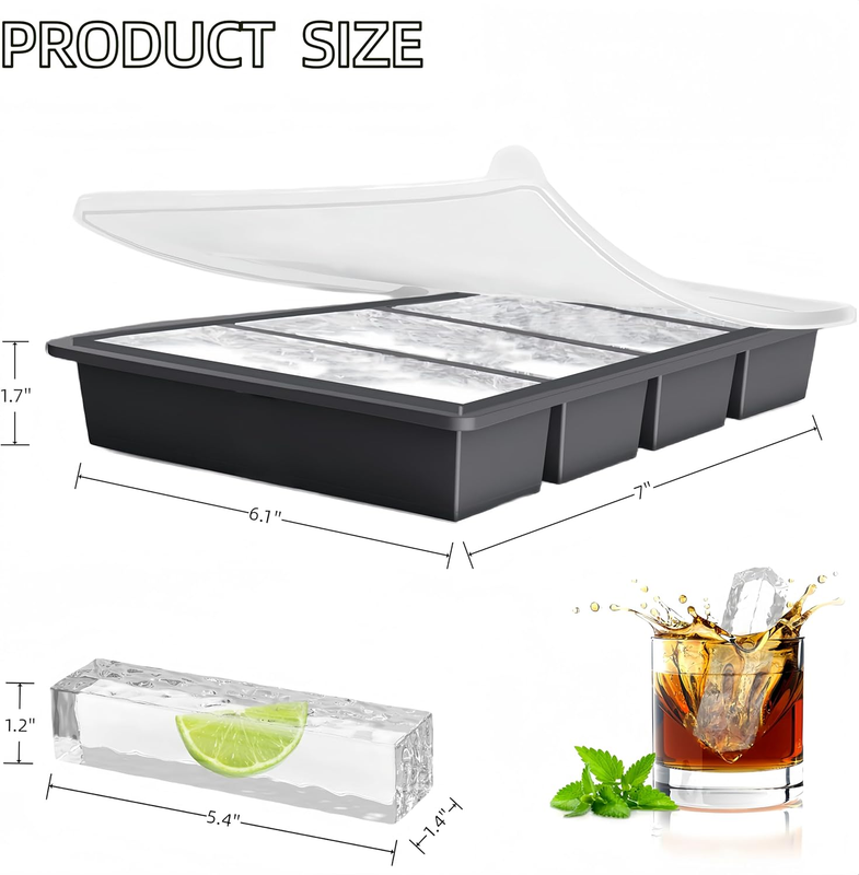 Silicone Ice Cube Trays Large for Whisky, Collins Ice Cube Mold Tray with Lid Al