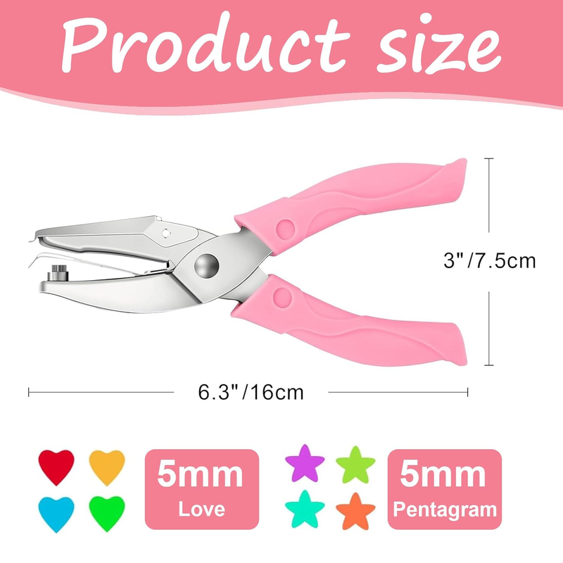 Upgrade your crafting toolkit with our professional 2-pack hole puncher set! Featuring popular heart hole punch (0.22") and star hole punch (0.2") designs, this versatile handheld paper punch delivers flawless shapes for scrapbooking, custom punch cards, gift tags, and decorations. The ultimate small hole punch solution for crafters, teachers, and organizers!