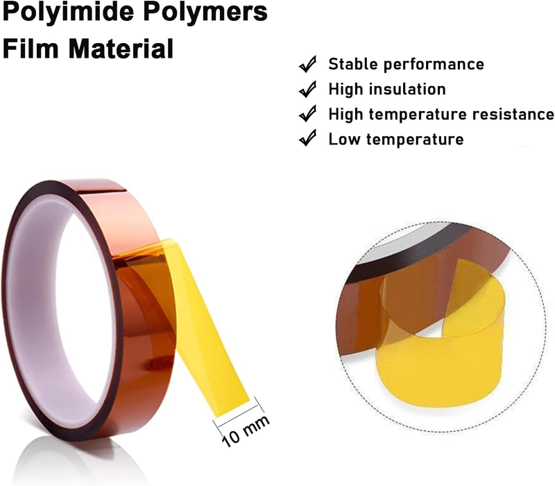 The heat press transfer sheets are made of glass fiber, which are non-stick, high temperature resistant, water repellent and re-usable and last a long time. They are a must have to protect your working surface. Perfect for heat press transfer and DIY various craft projects. Easy to trim in any shape and size allows you to create anything your imagination calls for! The high temperature heat resistant tape are made from polyimide film with silicone adhesive. Heat tape 100% brand new and No brittle after heating. Easy to stick and no residue after peeling off. High Insulation, high temperature resistance, acid and alkali-resistance, low electrolysis. Works well in protecting electronic products, electric motor, solder, painting, packing fixing, printing PCB board.