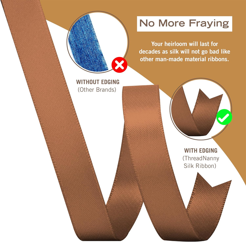 New 7Mm Size Threadnanny 6 Spools of 100% Pure Silk Ribbons - Brown Tones - 60 M