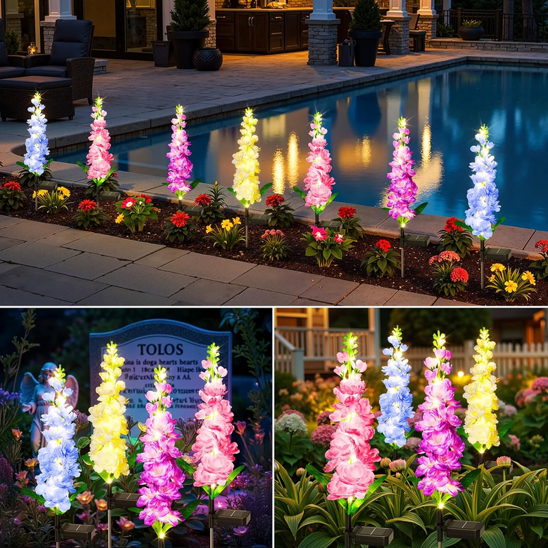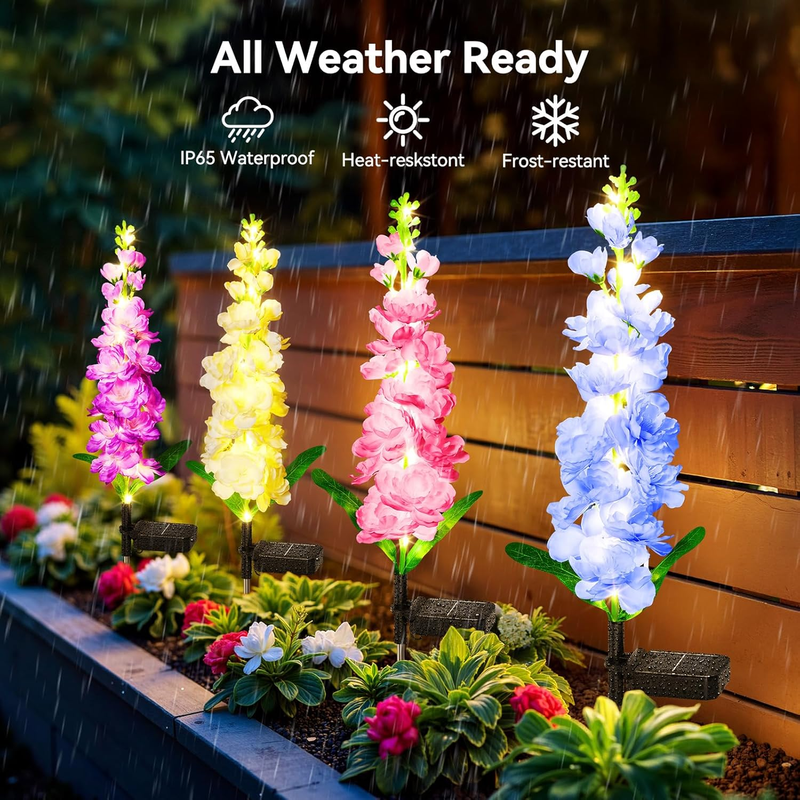 4 Pack Solar Delphinium Flower Lights |