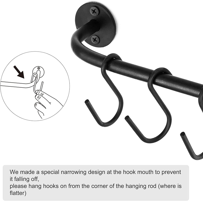 2 * black hanging rod, 10 * mug hooks, necessary mounting screws |