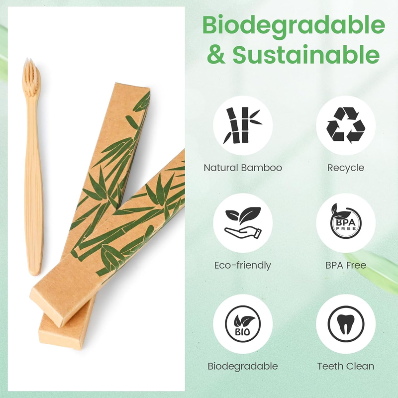 ??Sustainable Non-plastic ?- Bamboo toothbrush is made from all-natural and biodegradable bamboo, this green alternative cleans your teeth just as efficiently as plastic toothbrushes while helping to preserve the environment.