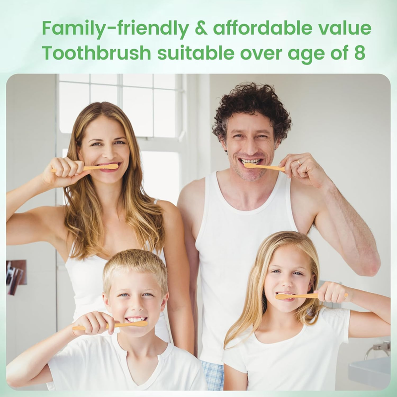 ??A Value Pack of 10 ?- A set of 10 bamboo toothbrushes is suitable for the whole family, and portable for travel. The packaging is made in craft paper, it is recyclable.