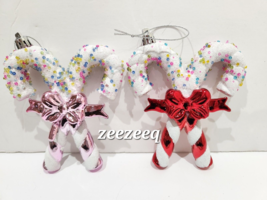 Christmas Sprinkles Candy Cane Pink Red Bow Plastic Tree Ornaments decor 4.5"