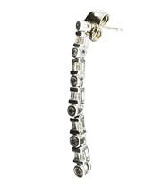 This product is a single 14k white gold earring featuring a dangle/drop style with natural white baguette and round diamonds. The earring is from the brand Single and is a fine jewelry piece perfect for jewelry and watches enthusiasts. The combination of high-quality metal, natural diamonds, and elegant design make this earring a stunning and luxurious accessory.