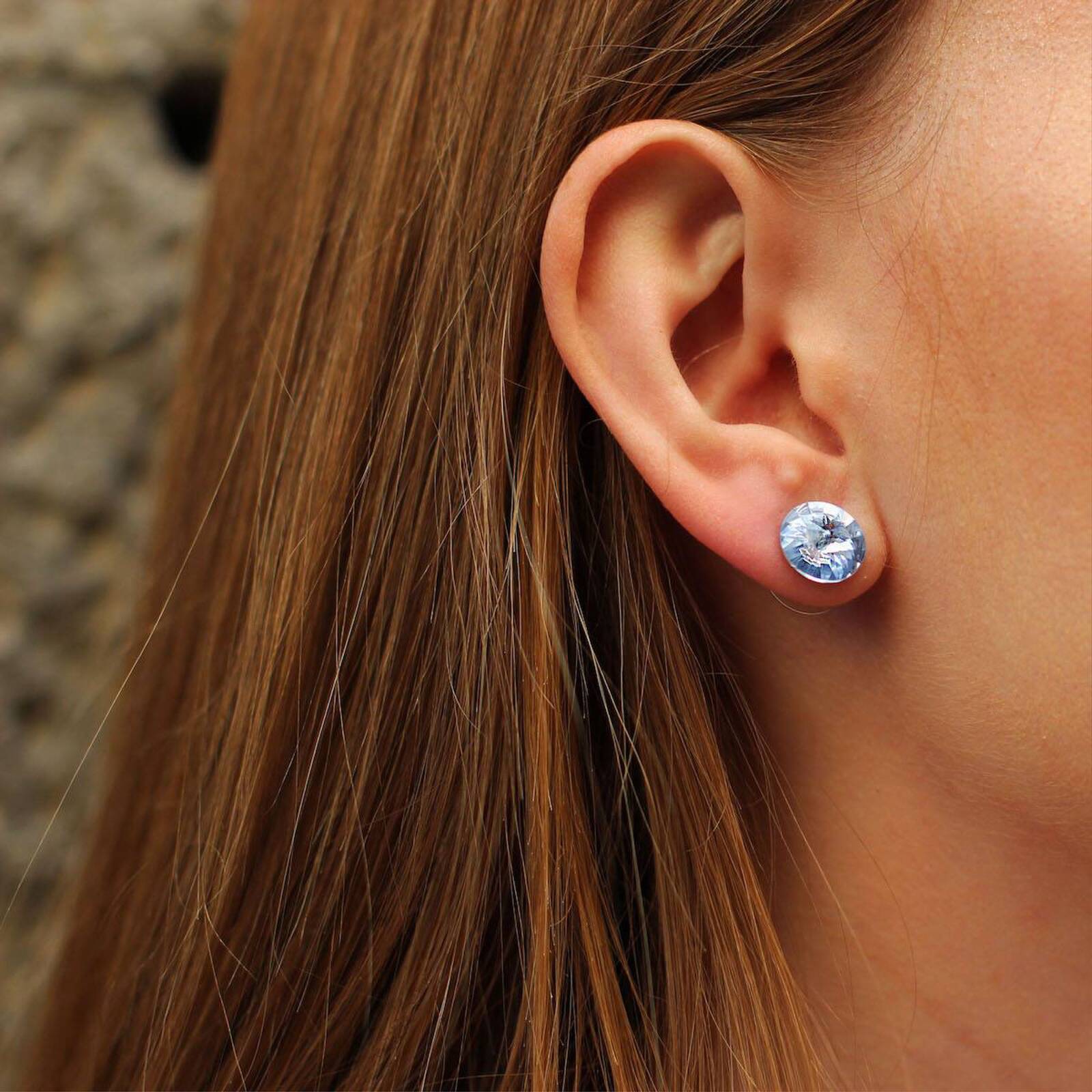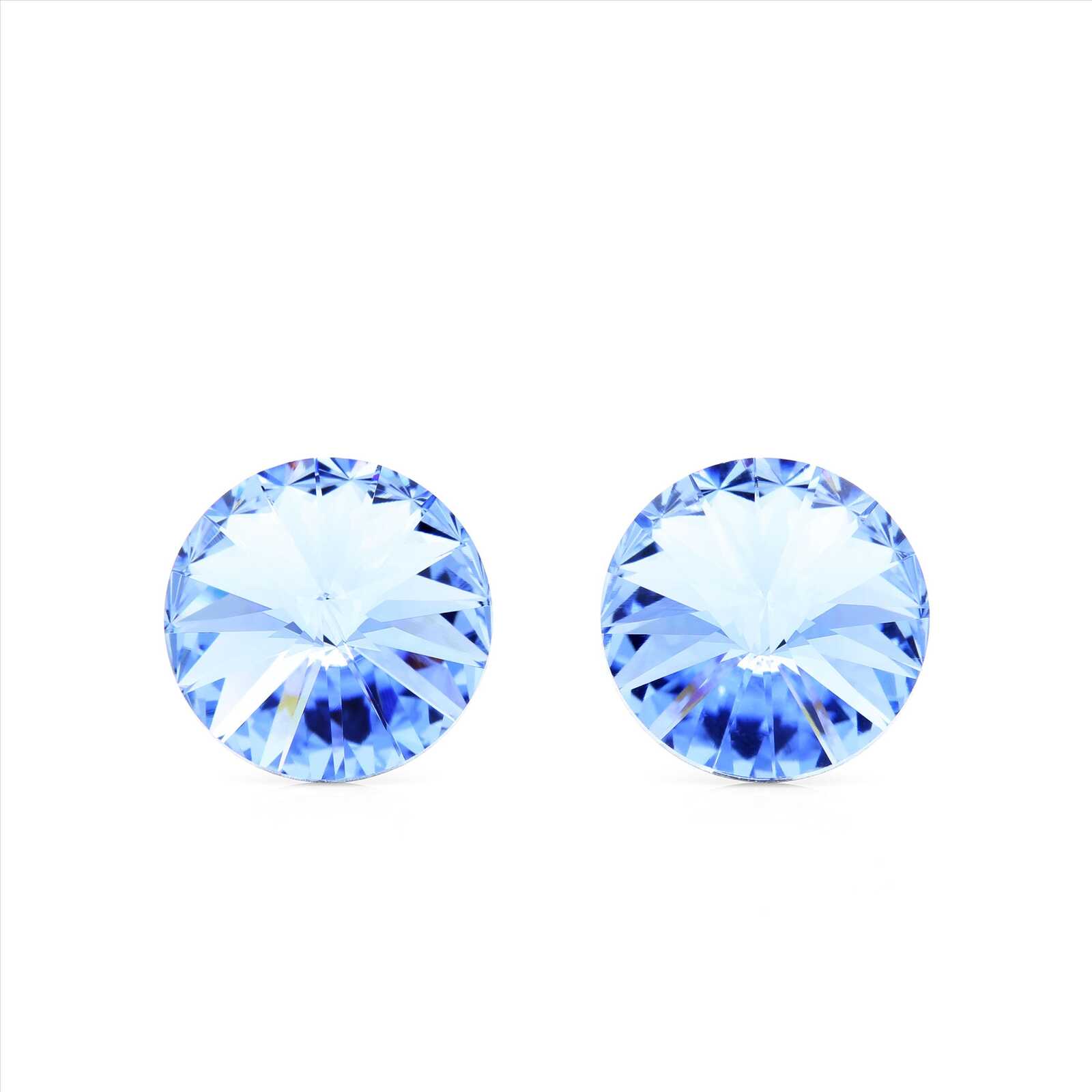 These earrings are made with genuine 10mm light sapphire Rivoli crystals from Swarovski, known for their high quality and durability.
