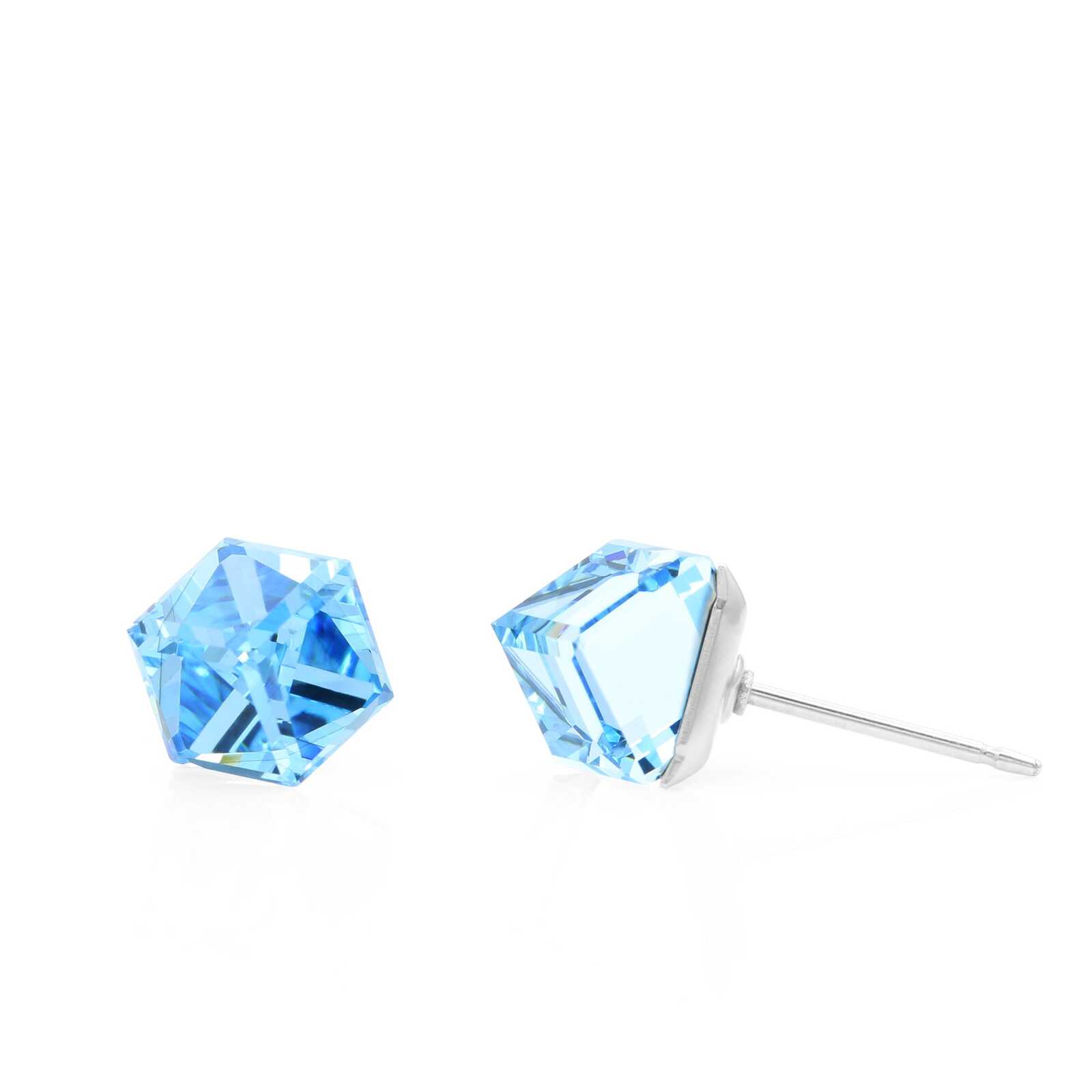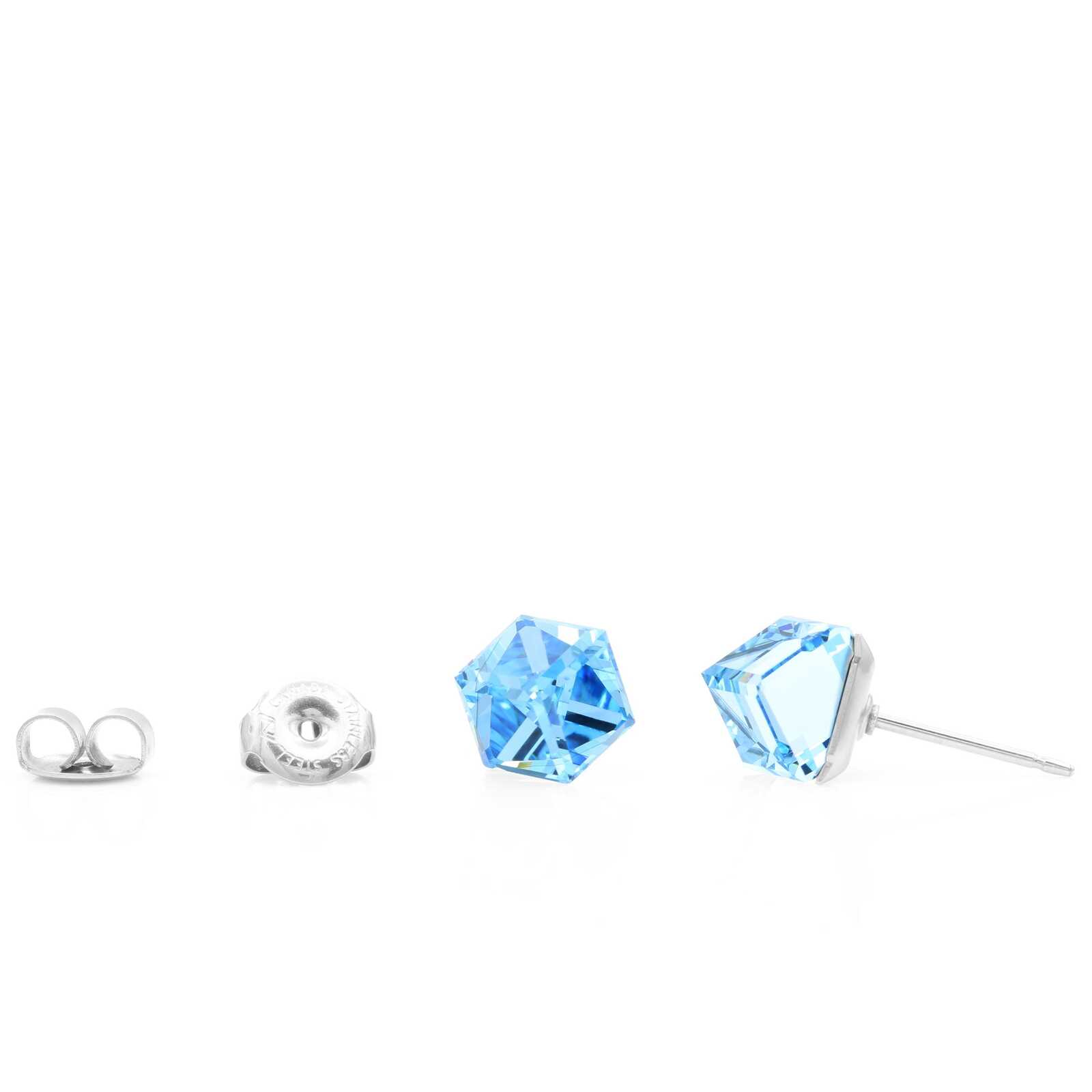 These stunning earrings are handcrafted with hypoallergenic materials and feature mesmerizing 6mm blue Swarovski cubic crystals.