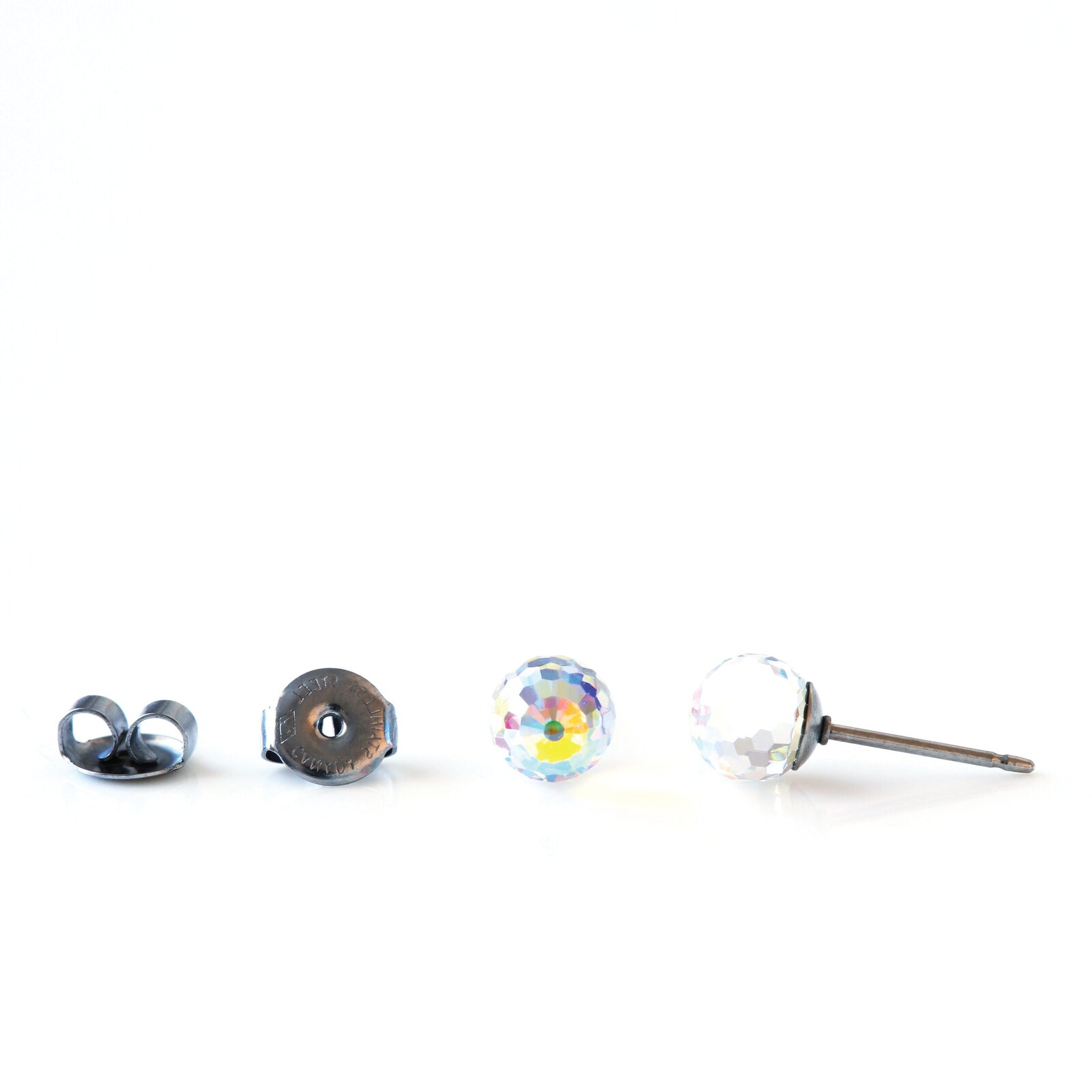 6mm Iridescent Disco Ball Stud Earrings – Aurore Boreale Crystals, Hypoallergeni