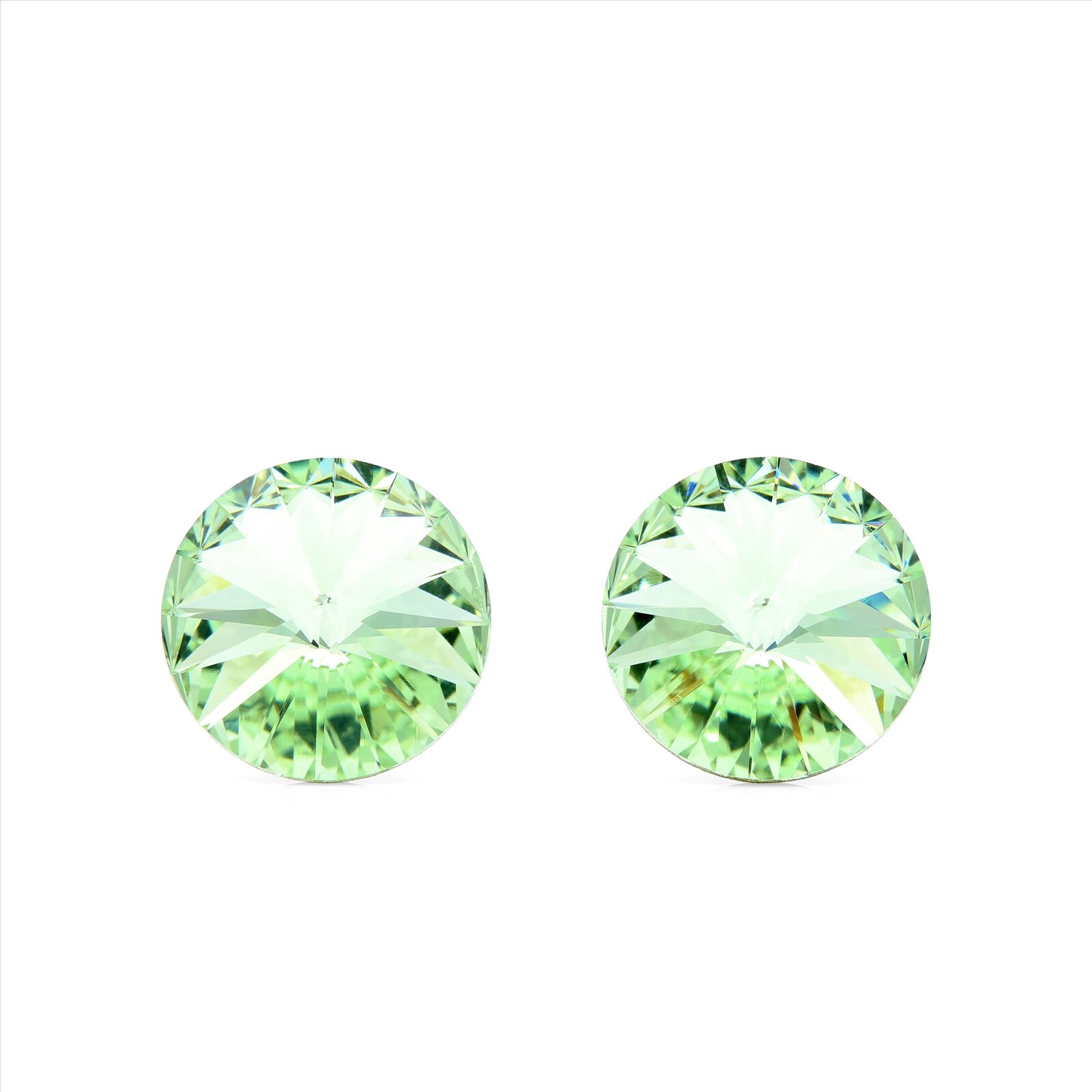 Designed to bring a sparkling touch of color to your look, these beautiful crystal stud earrings rock a bright 10.7mm Rivoli cut Swarovski crystal assembled on top of a hypoallergenic stainless steel finding.
