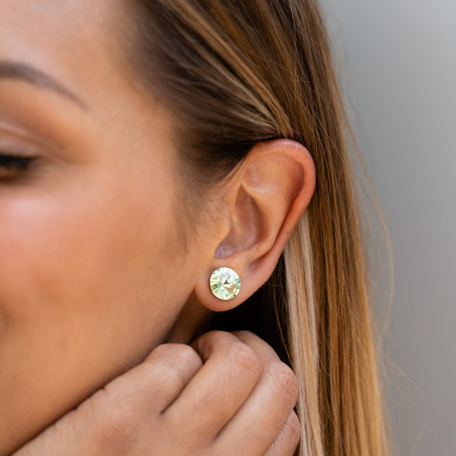 10mm Green Swarovski Earrings | Round Crystal Earrings | Minimalist Studs | Ever