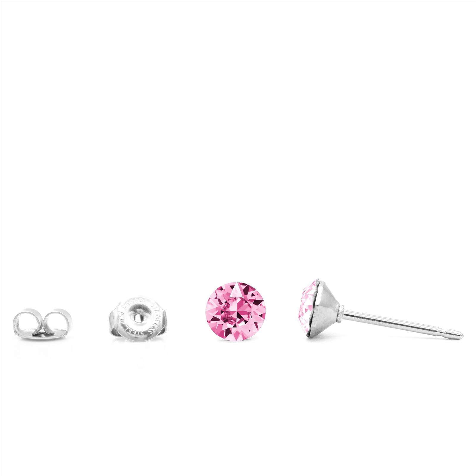 Delicate and effortlessly feminine, these 4mm light rose Swarovski studs add a whisper of pink sparkle to your everyday look.