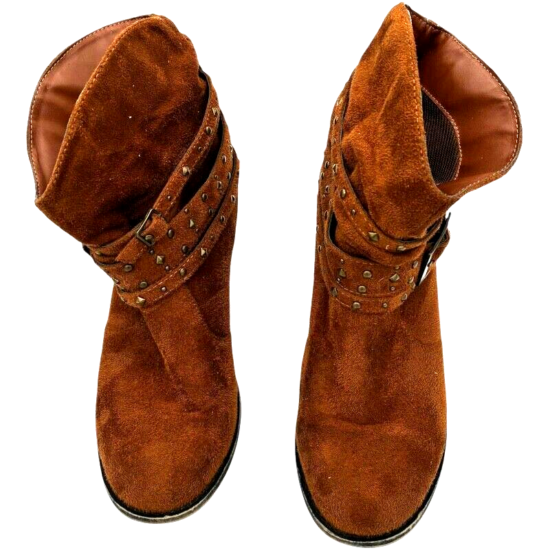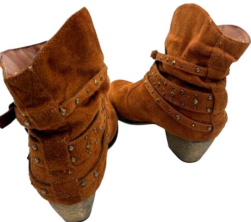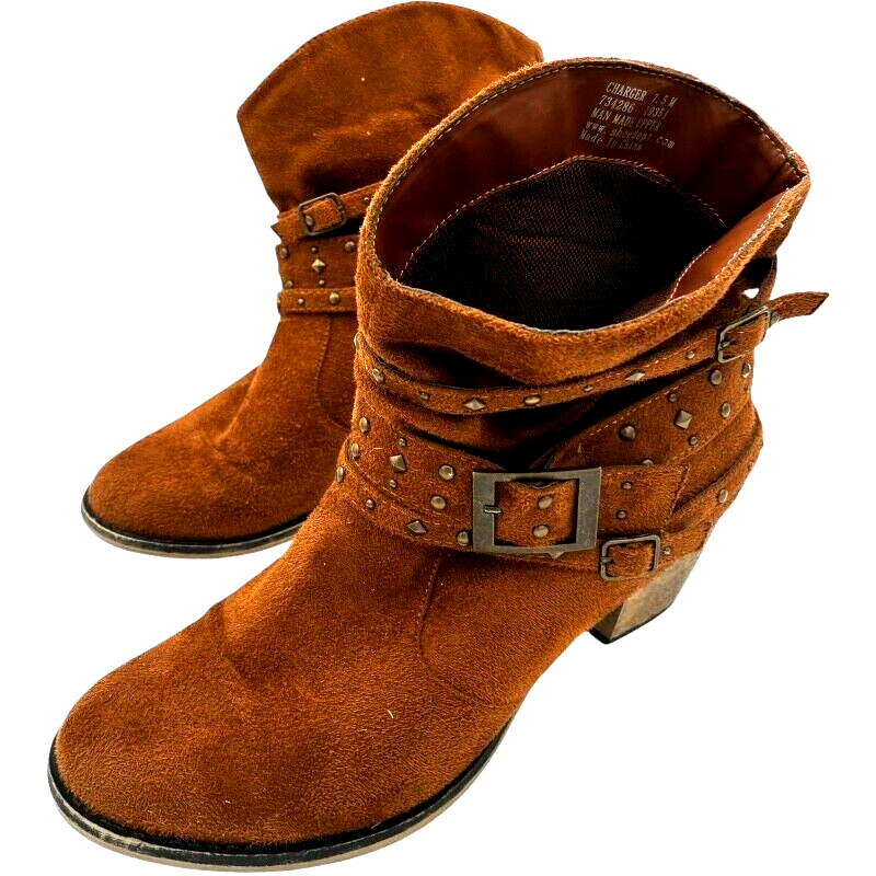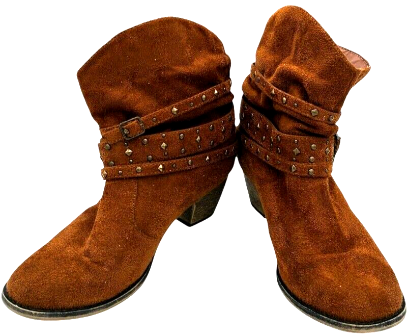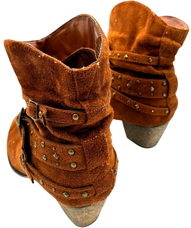 ID required charger studded strappy rust faux suede pull-on ankle boots size 7.5