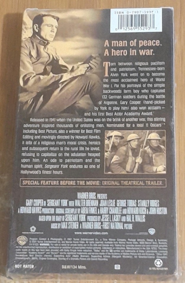 I am selling a VHS copy of the classic war drama SERGEANT YORK, featuring Gary Cooper in the first of his two Oscar-winning roles. The copy I am selling still remains in brand new condition and in shrink wrap. I had it for years but I never bothered to open it, so I am getting rid of it.