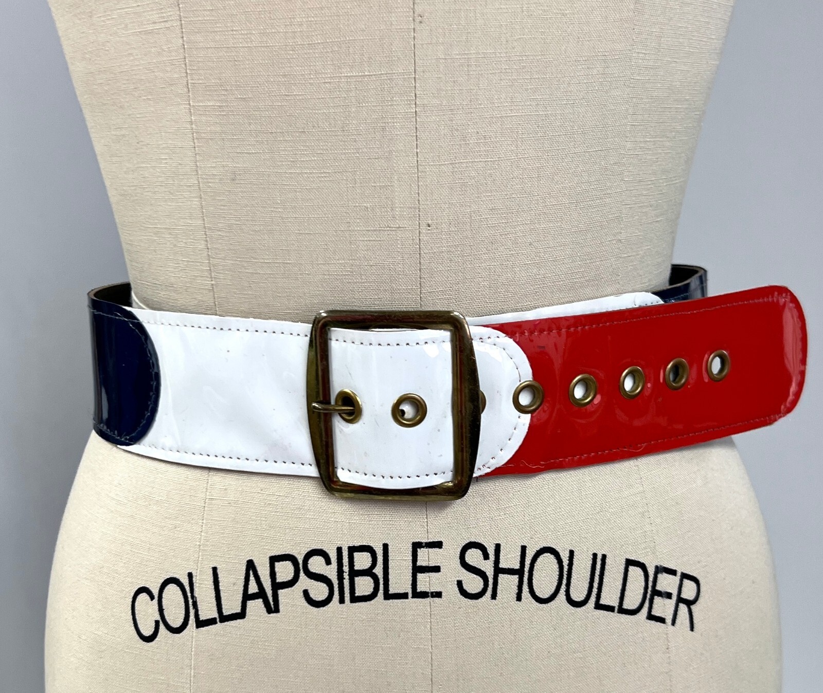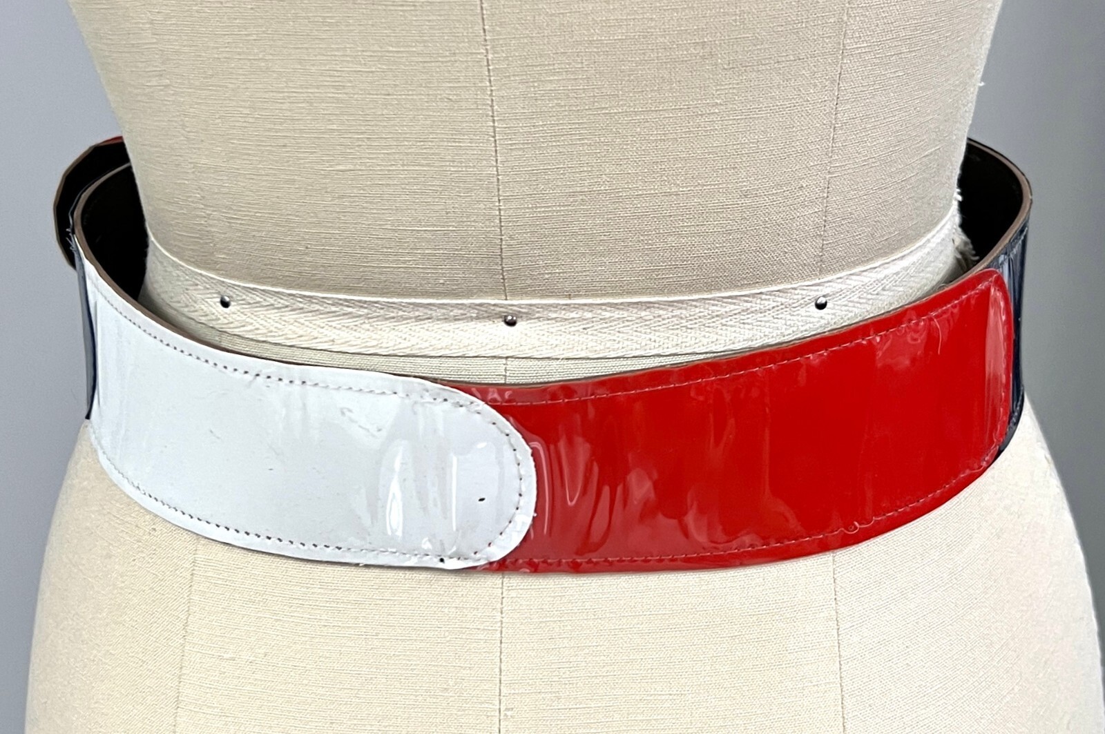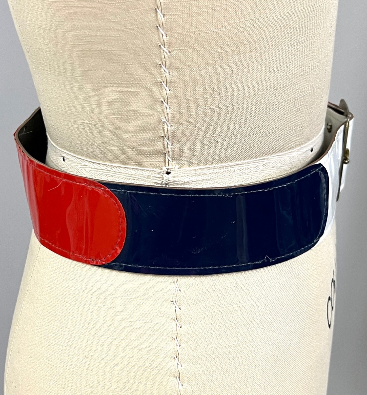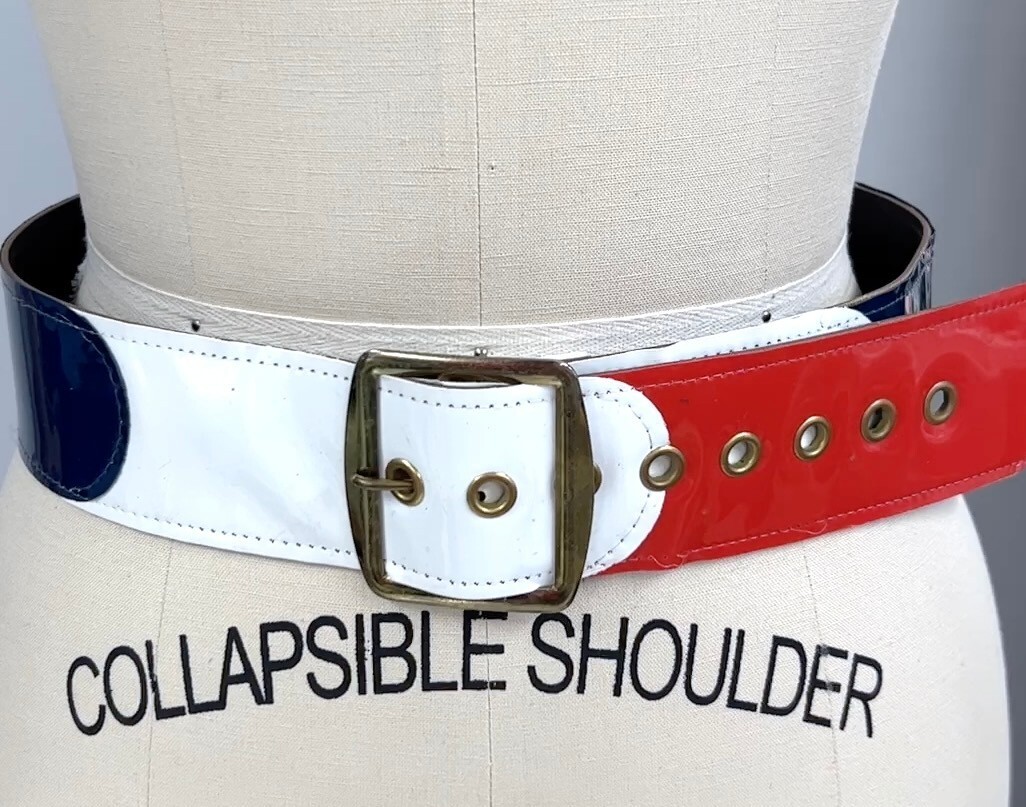 Fun Womens Vintage Patent Vinyl Belt Red WHite Blue Color Block Wide M 60s-70s