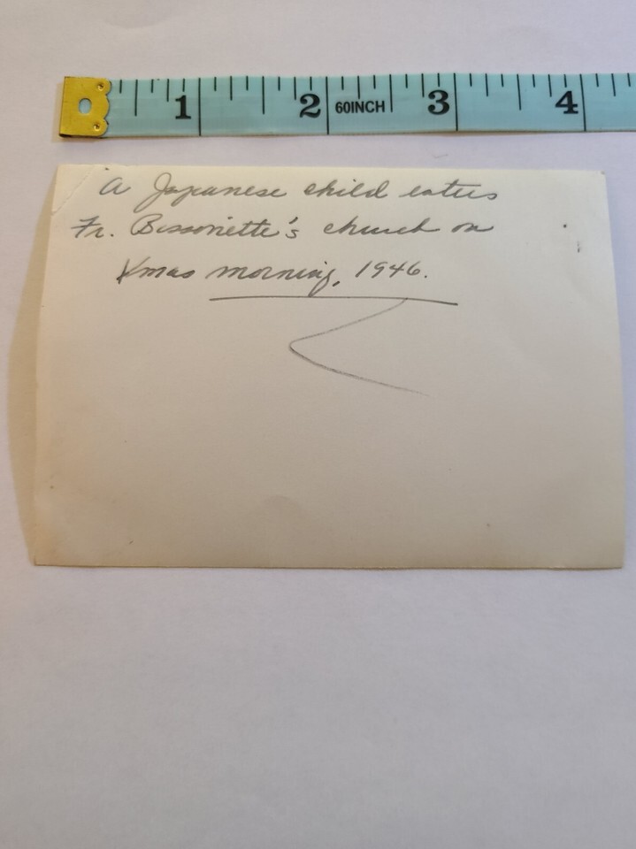 Photo of a Japanese Child Standing Outside a Church on Christmas 1946 Original