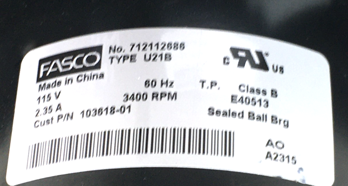 This is Fasco Fasco 712112686 Inducer Blower Motor Assembly 702112686C 103618-01 115V 3400 RPM used part.