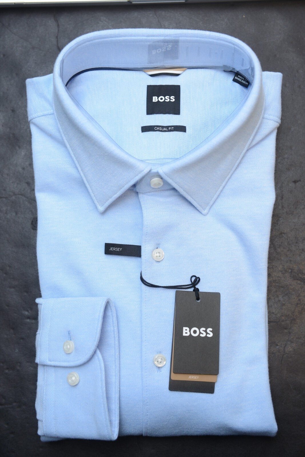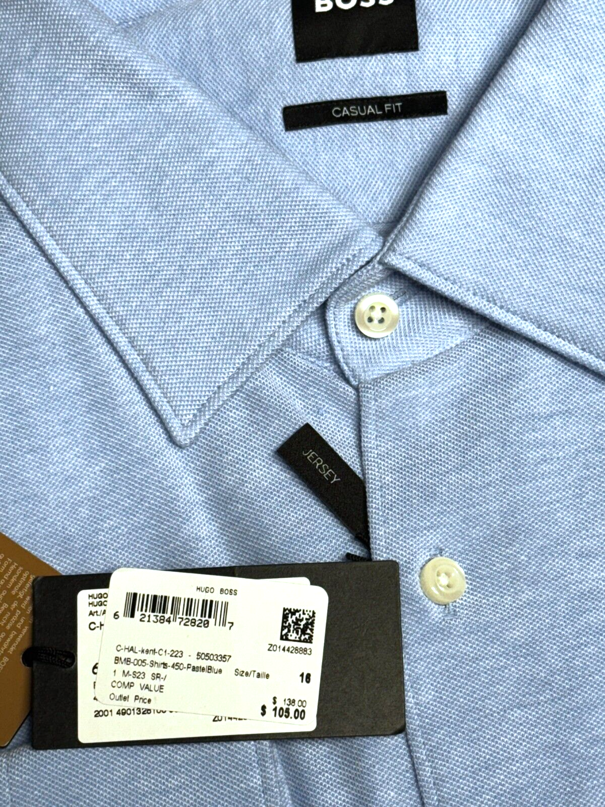 NWT Hugo Boss Manner Hal Kent Casual Fit Pastellblau Jersey Baumwollhemd