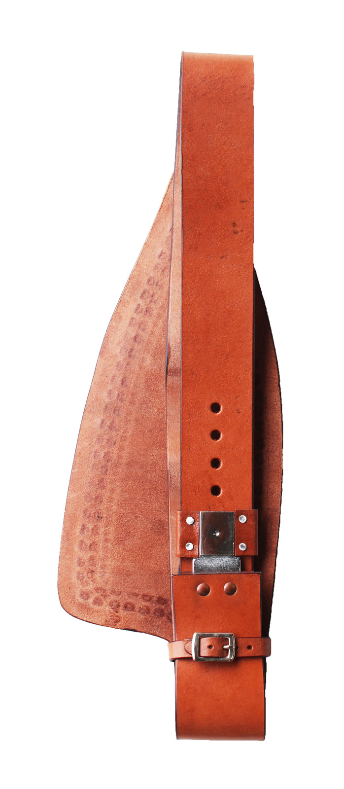 Challenger replacement saddle fenders made of genuine full grain leather. Uniquely accented with hand-tooled edges on dark tan leather. Fenders come complete with belvins buckles and hobble straps. Adult size, each measure 16-1/2" long x 7-3/8" wide.