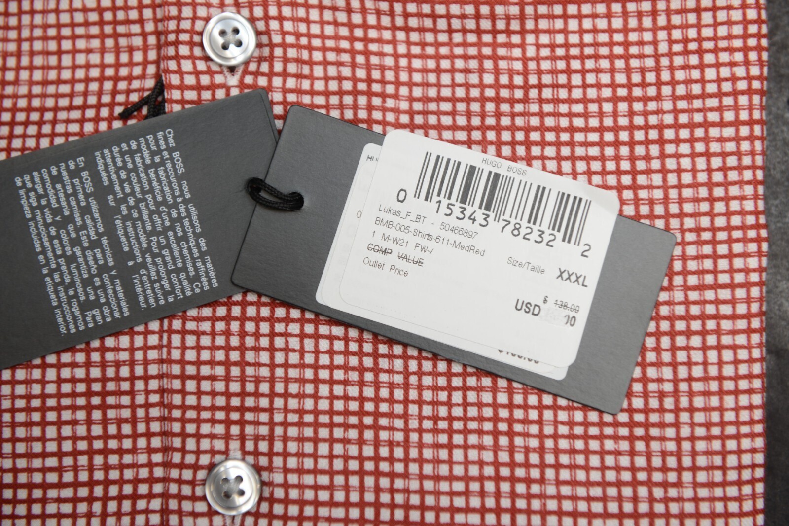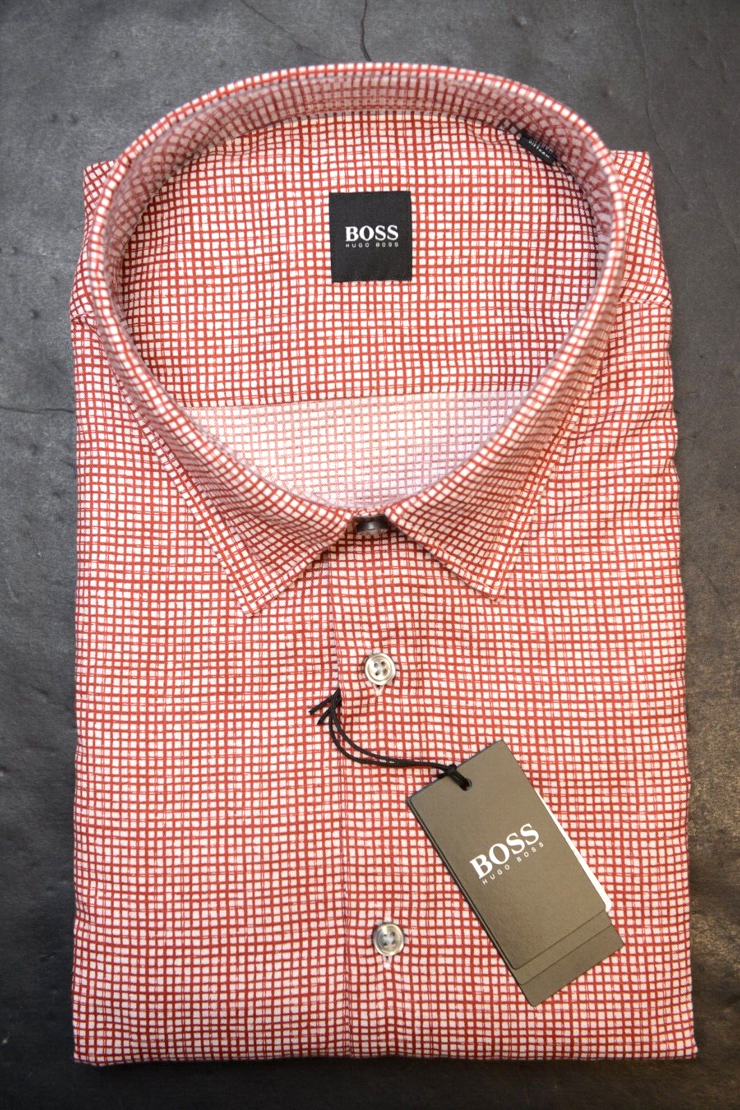 HUGO BOSS Hombre Lukas Med Rojo Escocesa Algodón Negocios Camisa Informal Big Y