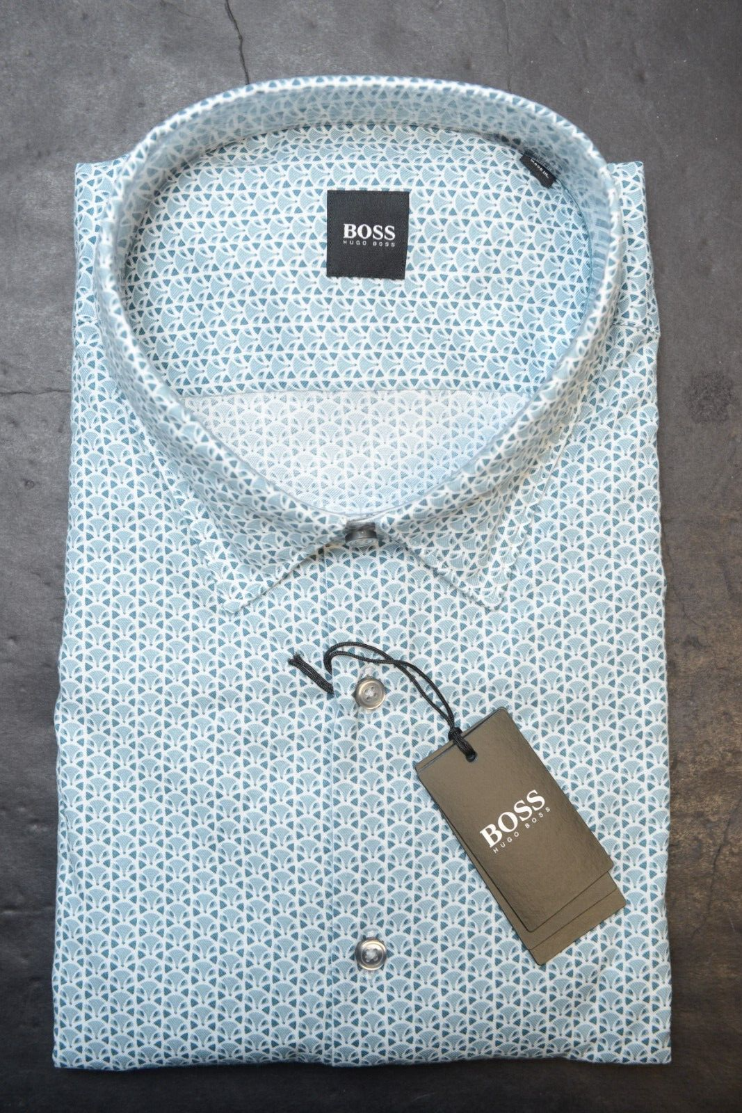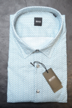 NWT Hugo Boss Men's Lukas Turq/Aqua Papas de algodon Camisa informal de algodon