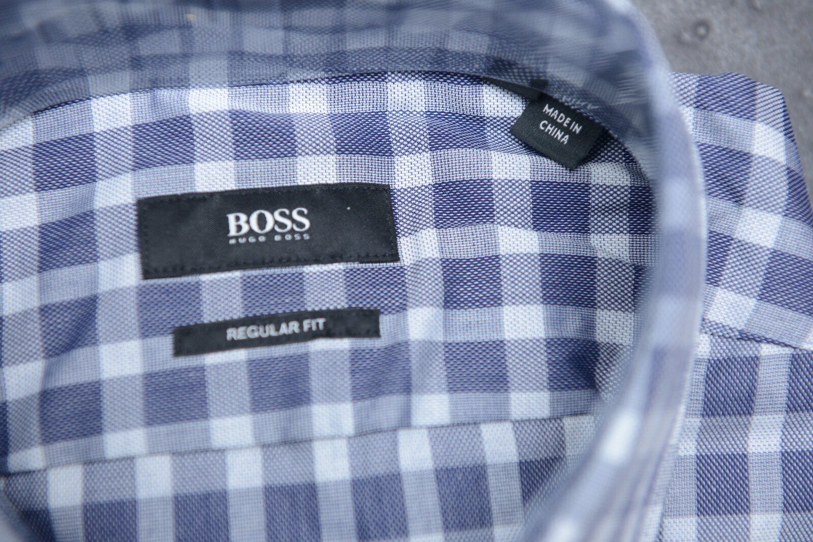 HUGO BOSS Hombre Gordon Corte Normal Azul Marino Cuadros Algodón Camisa 37 14.5 added to cart.