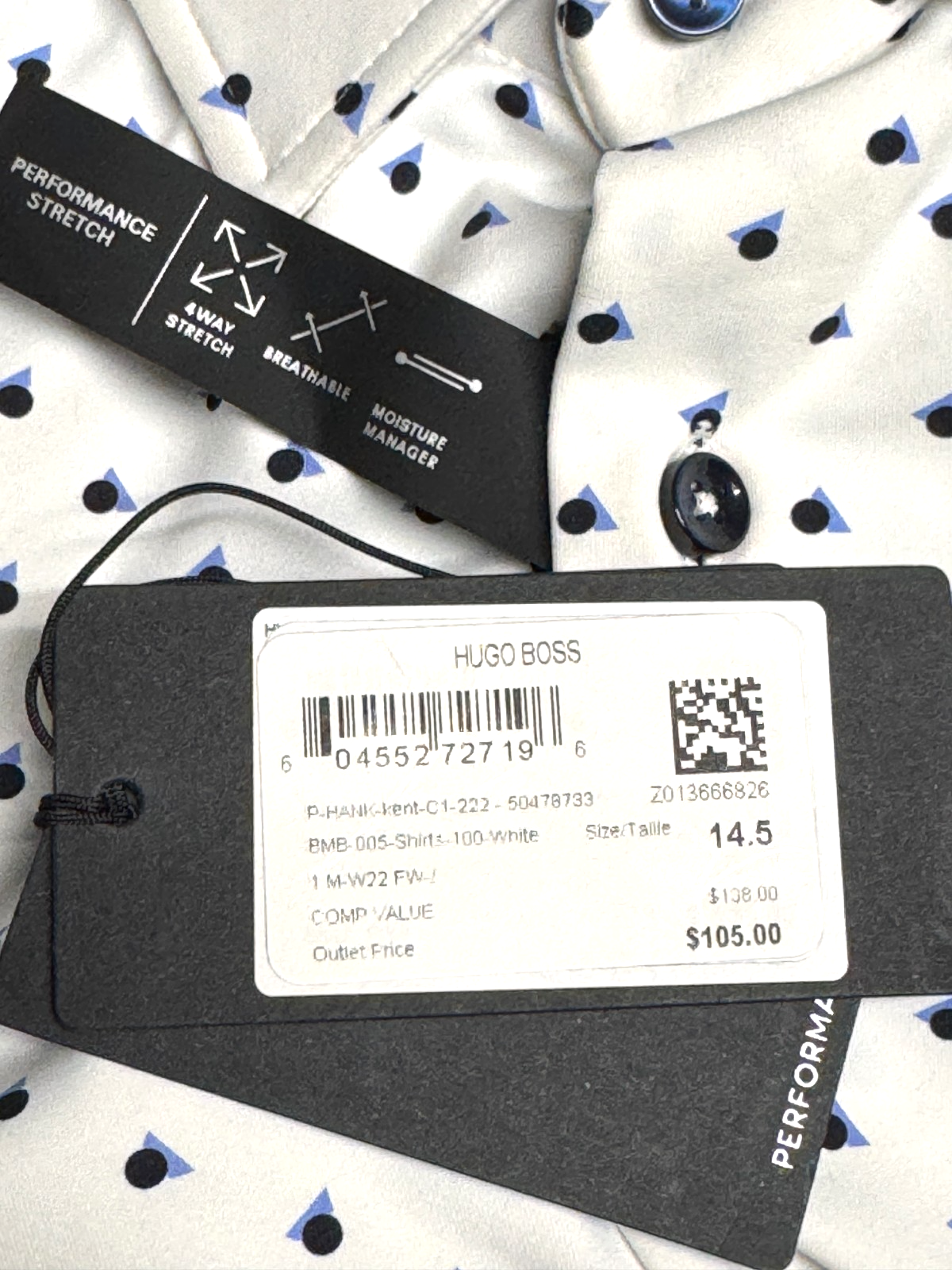NWT Hugo Boss Hank Kent Kent Travel Slim Fit Performance Dress Dress Shirt