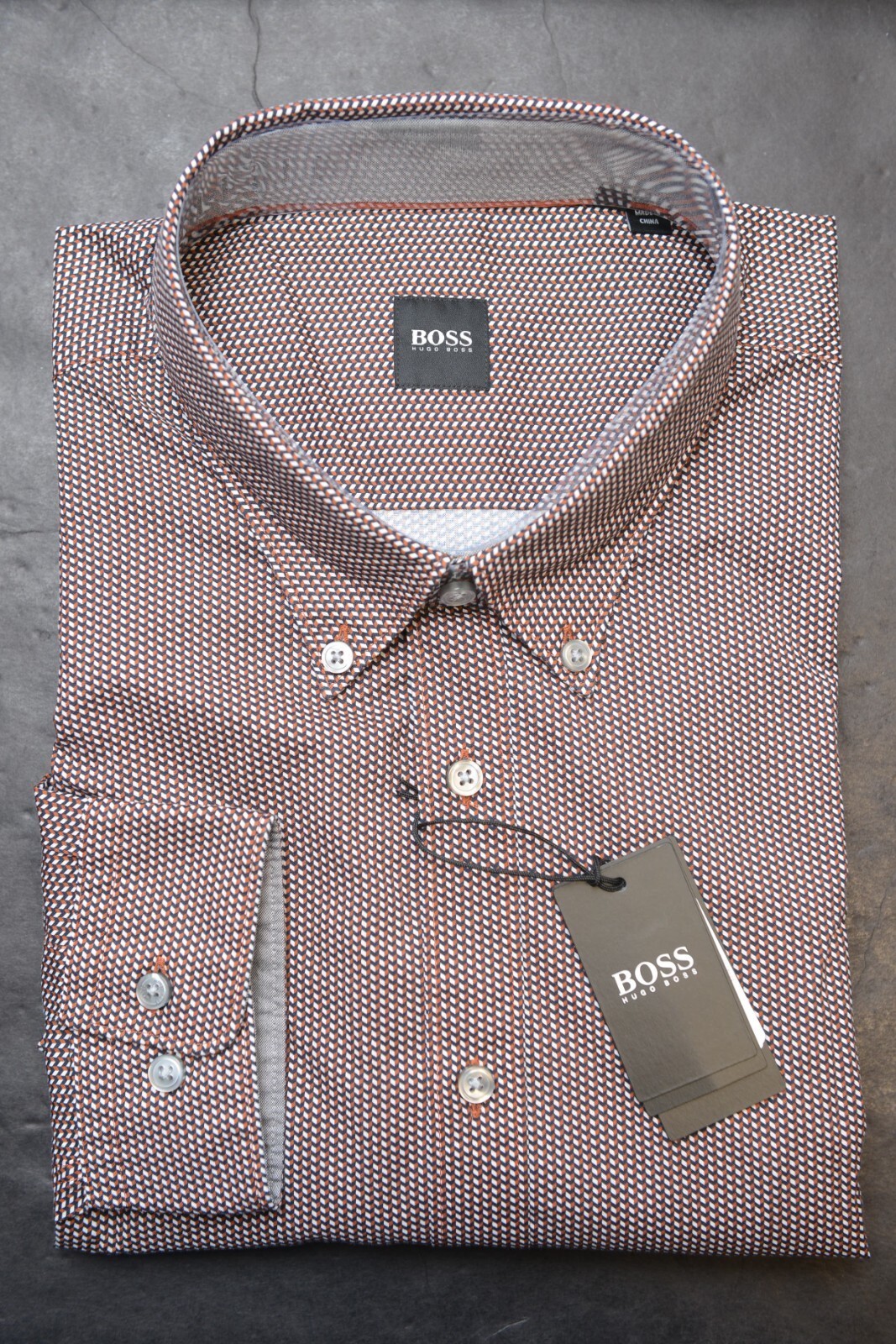 NWT Hugo Boss Men's LOD-53 Navy/Orange/White Bapids Algodon Camisa informal