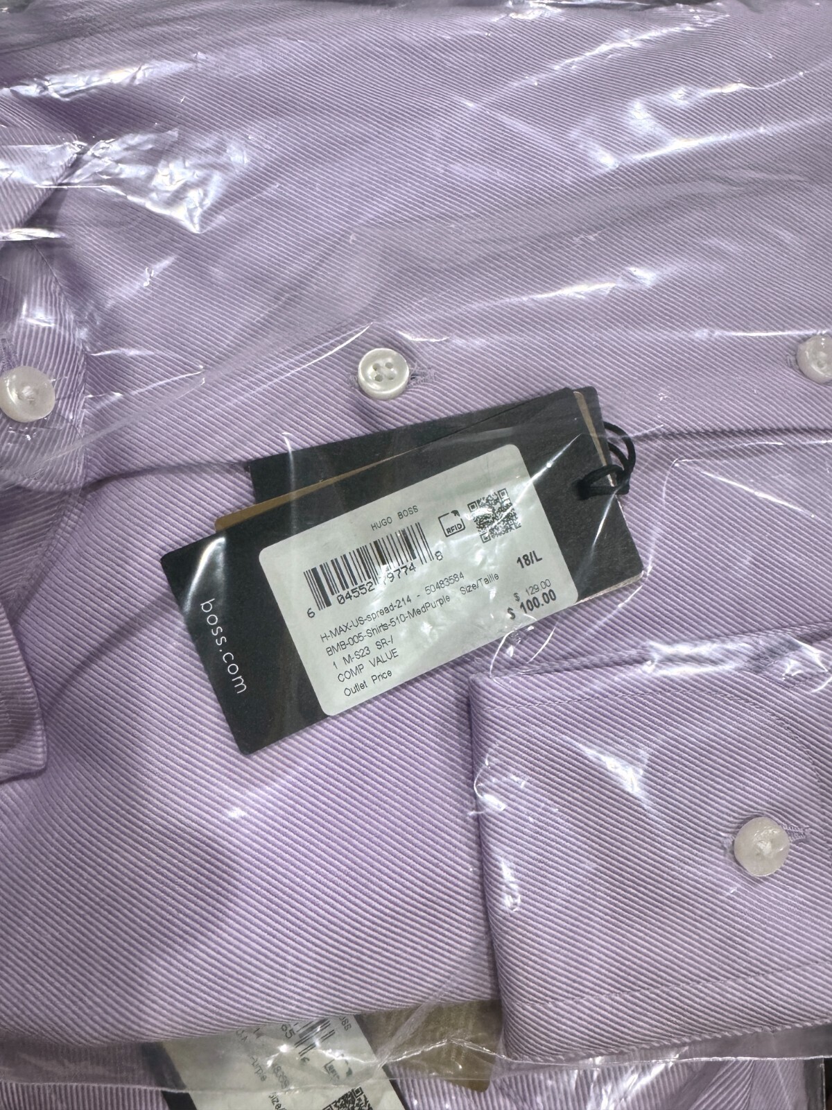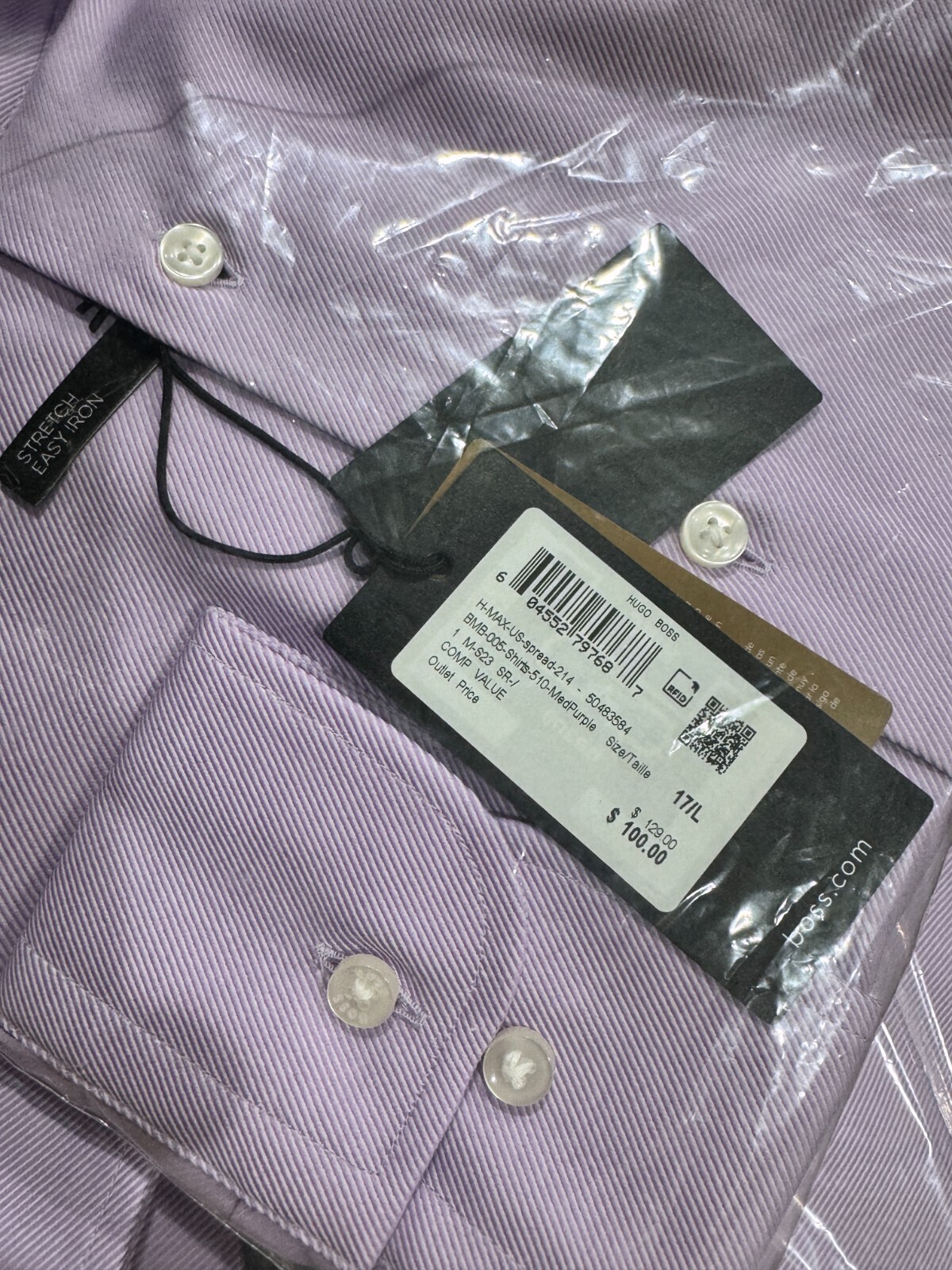 NWT Hugo Boss Max Explejado Easy Iron Fit Med Med Purple Stretch Algodon Camisa de vestir de algodon