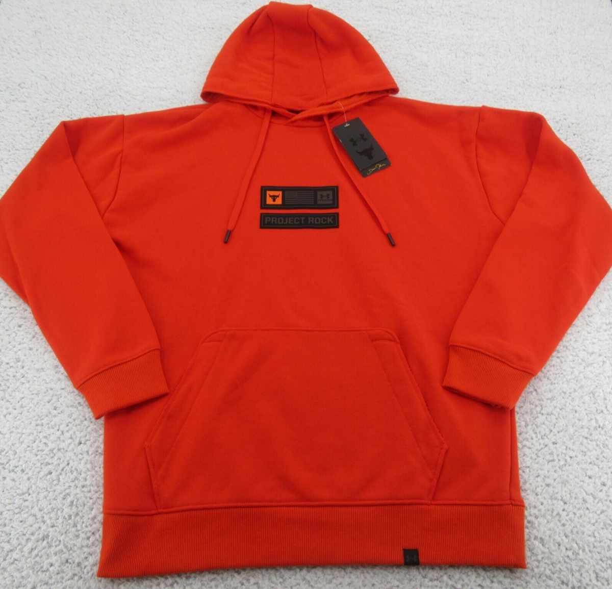 Under Armour UA Project Rock Hoodie Mens Size Medium Orange NEW 1382154-813