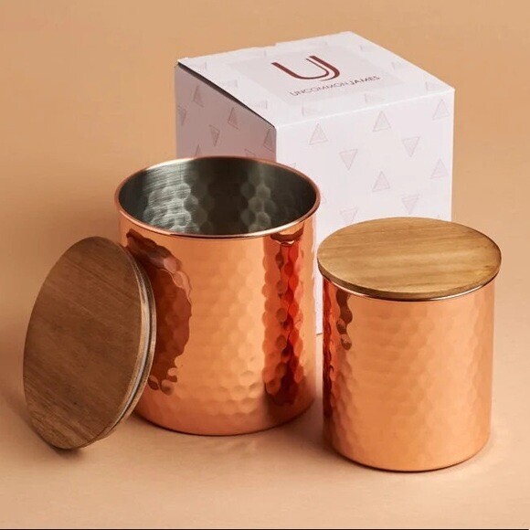 UNCOMMON JAMES Hammered COPPER Canister 2 piece Storage Container Set