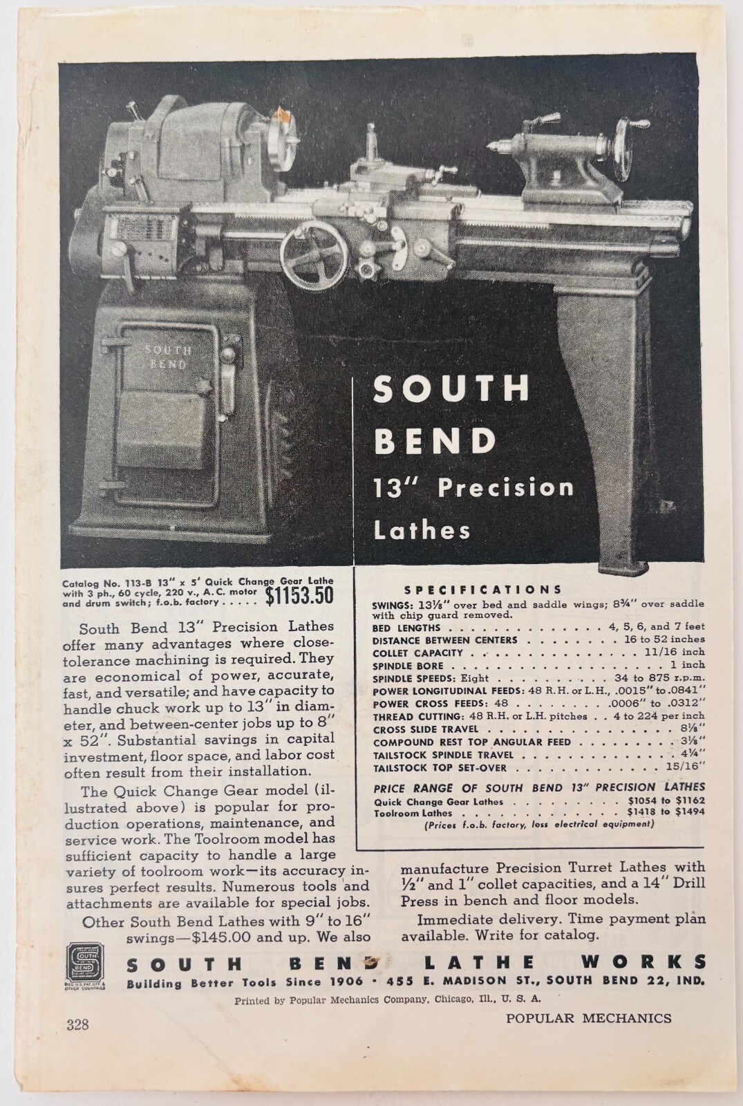 1948 South Bend Lathe Works Advertisement and 49 similar items