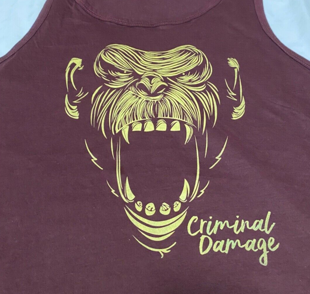 Criminal Damage Burgundy Semi Sheer 100% Cotton Sreaming Ape tank top Size Large