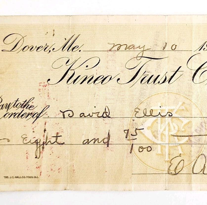1913 Kineo Trust Company Bank Check E.A. and 48 similar items