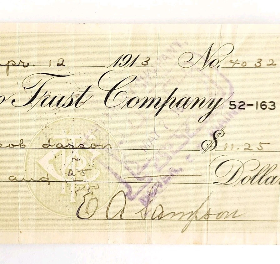 1913 Kineo Trust Company Bank Check E.A. Sampson Dover Maine Signed 4032 CHX6