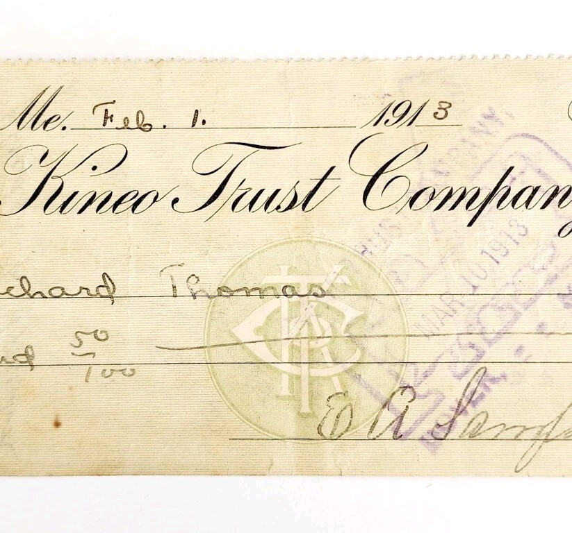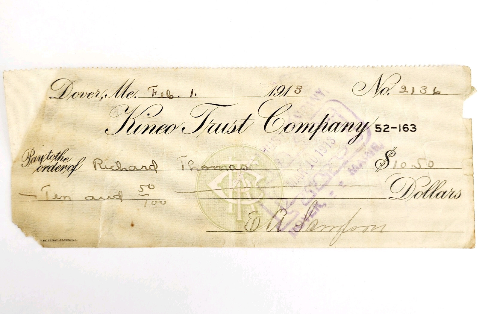 1913 Kineo Trust Company Bank Check E.A. and 48 similar items