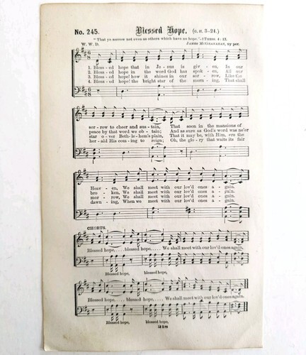 1883 Gospel Hymn Blessed Hope Sheet Music Victorian Religious Church ADBN1jjj