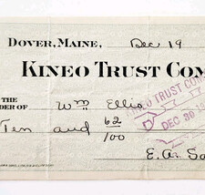 1915 Kineo Trust Company Bank Check E.A. and 33 similar items