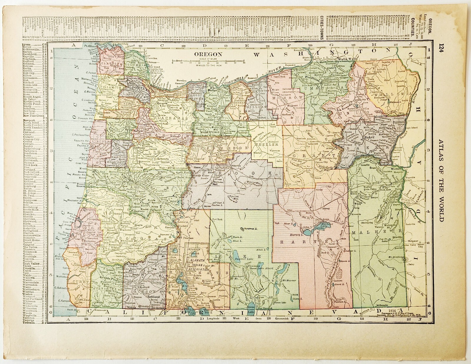 1917 Oregon State Map Antique Atlas Of The and 48 similar items