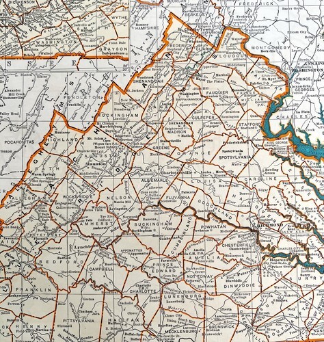 Virginia North America Map 1935 United States 14 x 11" Chesapeake LGAD99