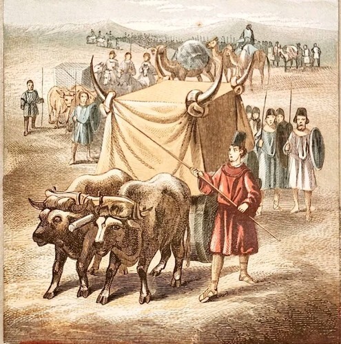 1853 Service Of The Merarites Rare Colored Engraving Victorian Bible Art DWNN23