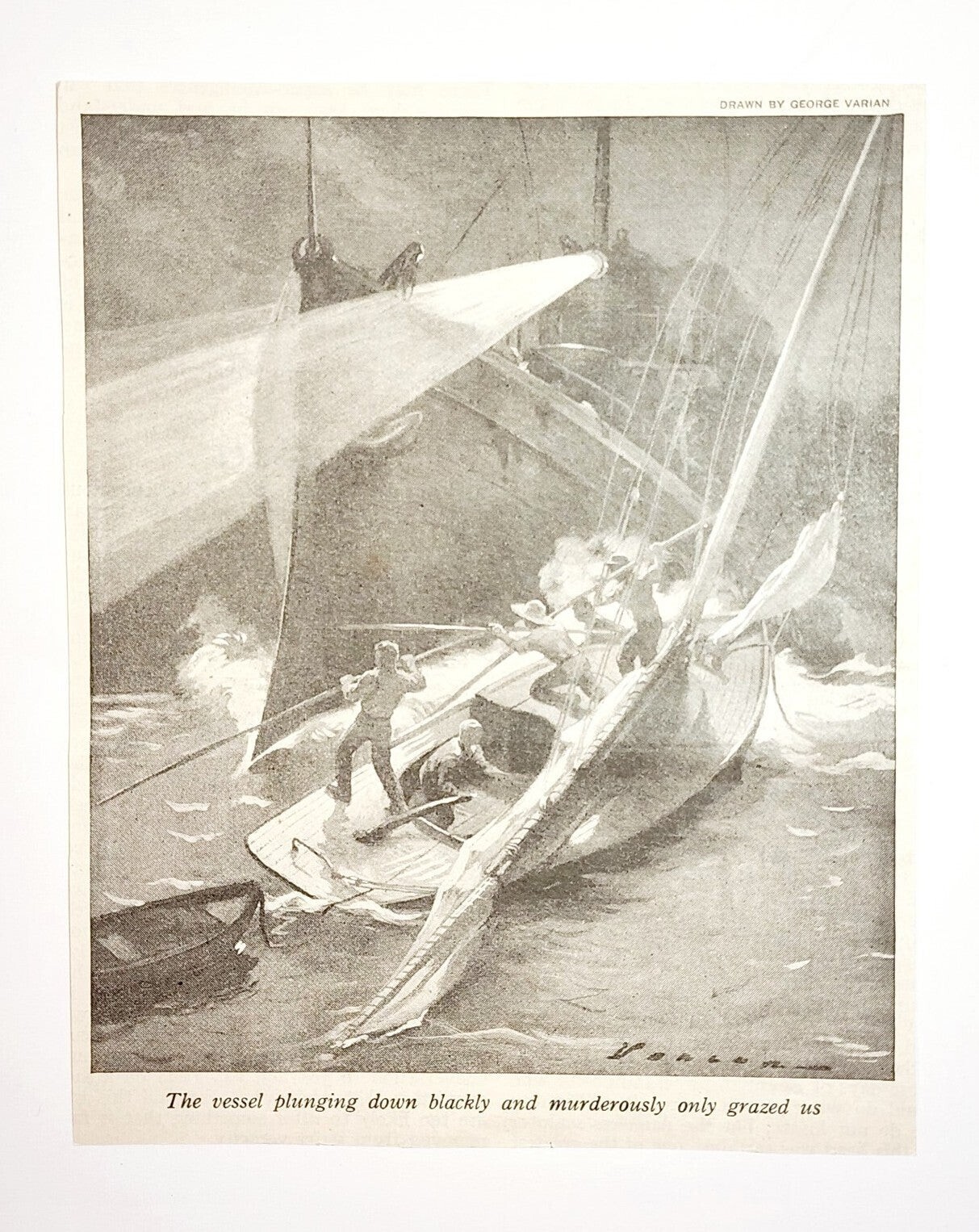 1923 George Varian Ships at Sea Art Print Drawing Antique Ephemera 5.5 x 4.5"