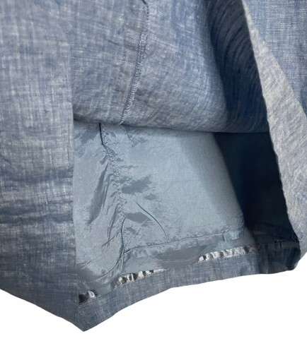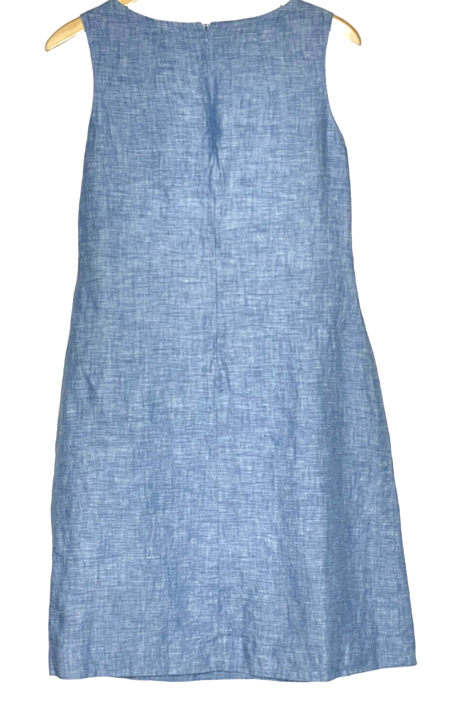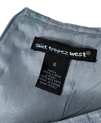 Saint Tropez West Linen Dress Size 6 Chambray Blue Twist Front Sleeveless Lined