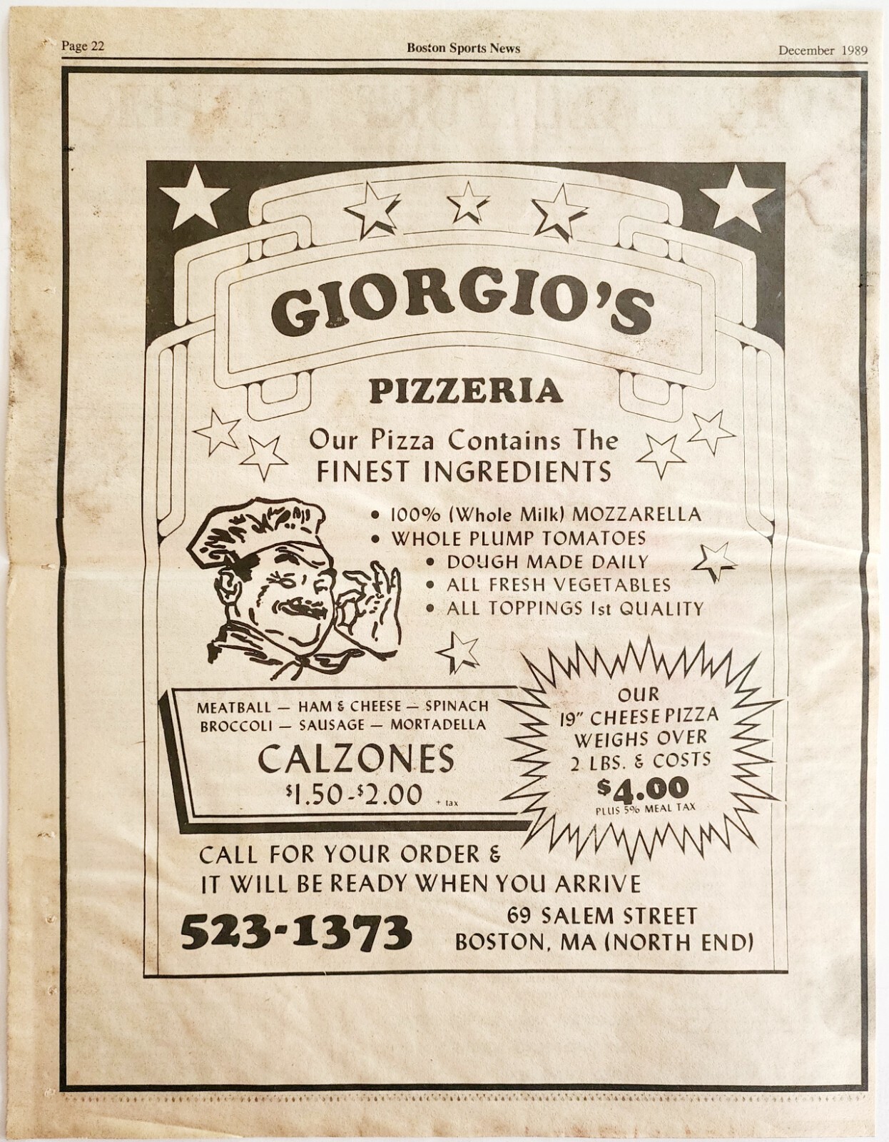 1989 Giorgio's Pizzeria Restaurant Advertisement Boston Pizza Shop DWJJ15