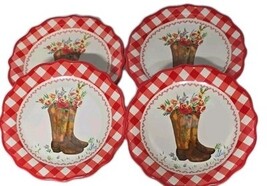 Four (4) Pioneer Woman ~ Gingham Edge w/COWGIRL BOOT ~ 7" Stoneware Plates