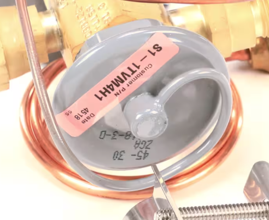 The York S1-1TVM4H1 (4518) Expansion Valve/TXV Kit is a genuine OEM thermostatic expansion valve designed for use with R410A refrigerant systems. Built for precise refrigerant metering and superheat control, this 4-ton TXV optimizes system efficiency and performance under varying load conditions. The valve includes a 30-inch capillary tube and 5/8" x 5/8" connections, providing a perfect fit for York air conditioning and heat pump units.