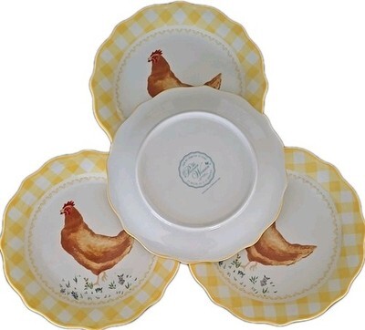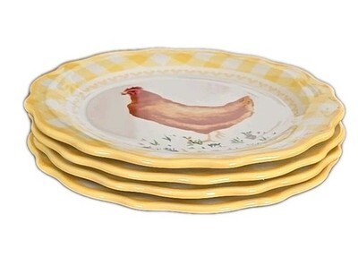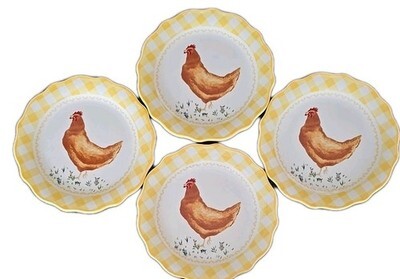 Four (4) Pioneer Woman ~ Yellow ~ Gingham Edge w/CHICKEN ~ 7" Stoneware Plates