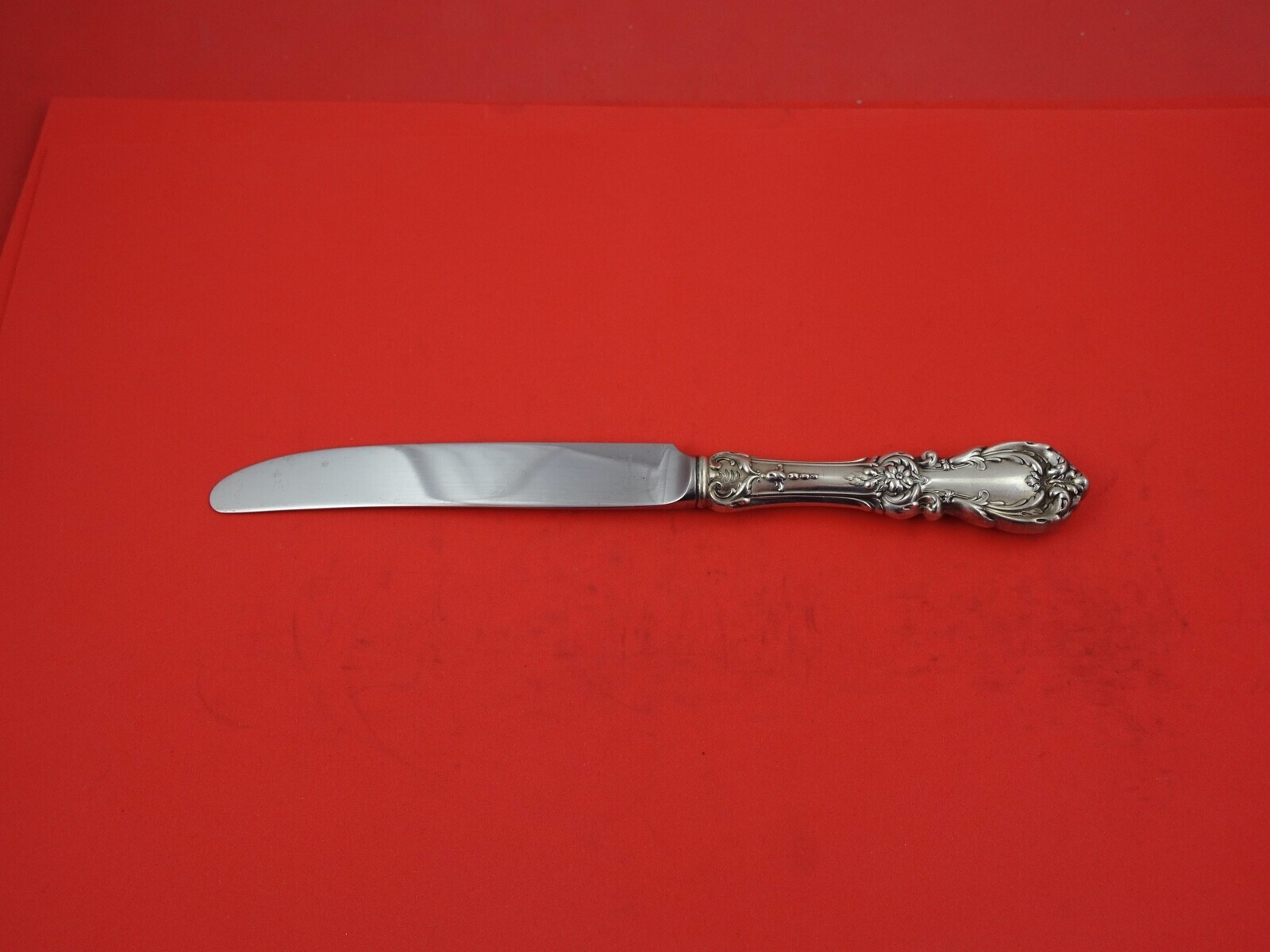 Burgundy by Reed and Barton sterling silver hollow handle with stainless blade Dinner Knife French, 9 5/8". It is not monogrammed and is in excellent condition.