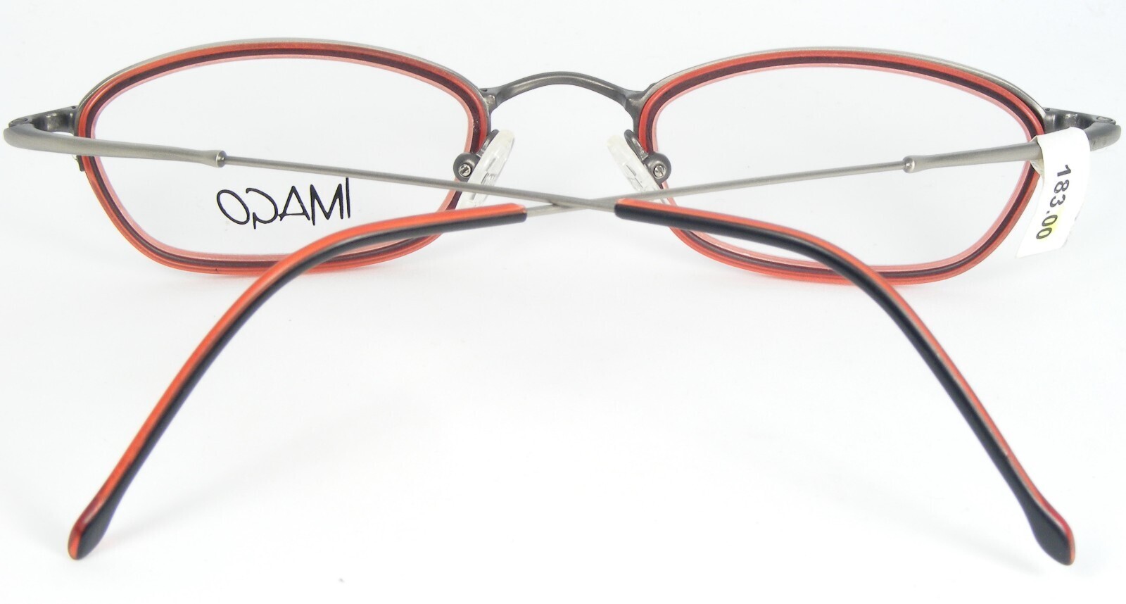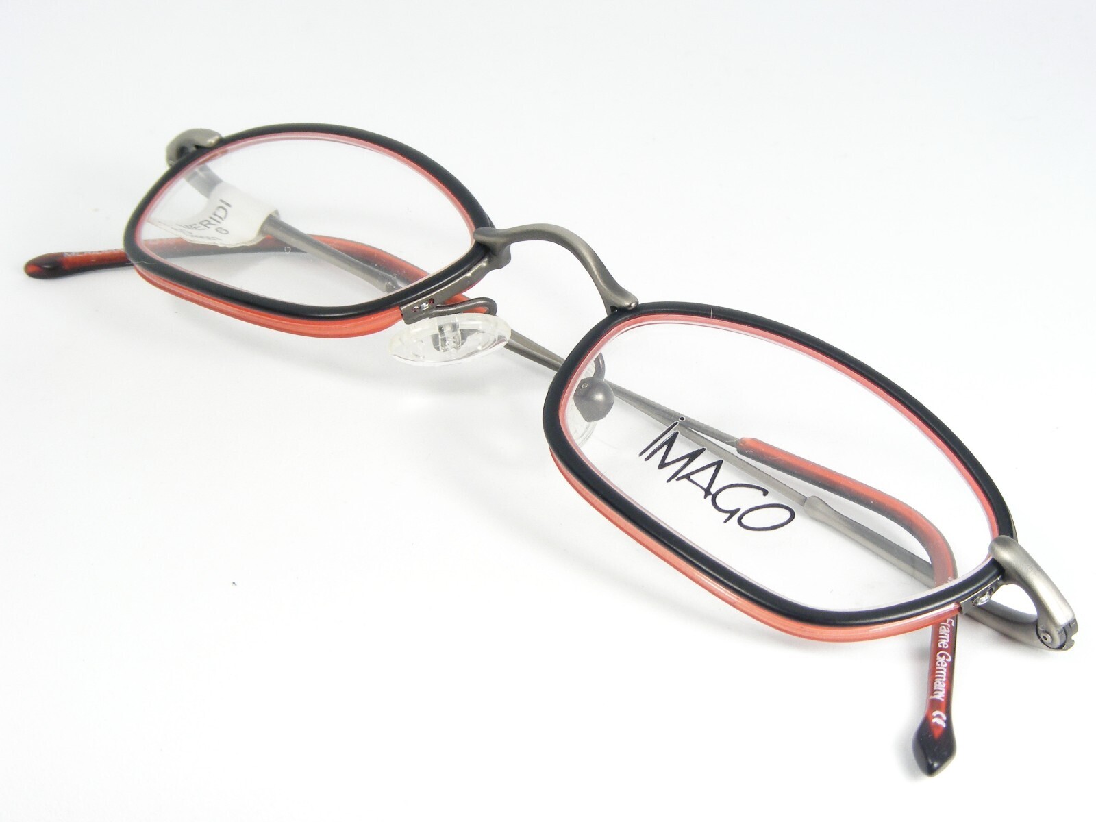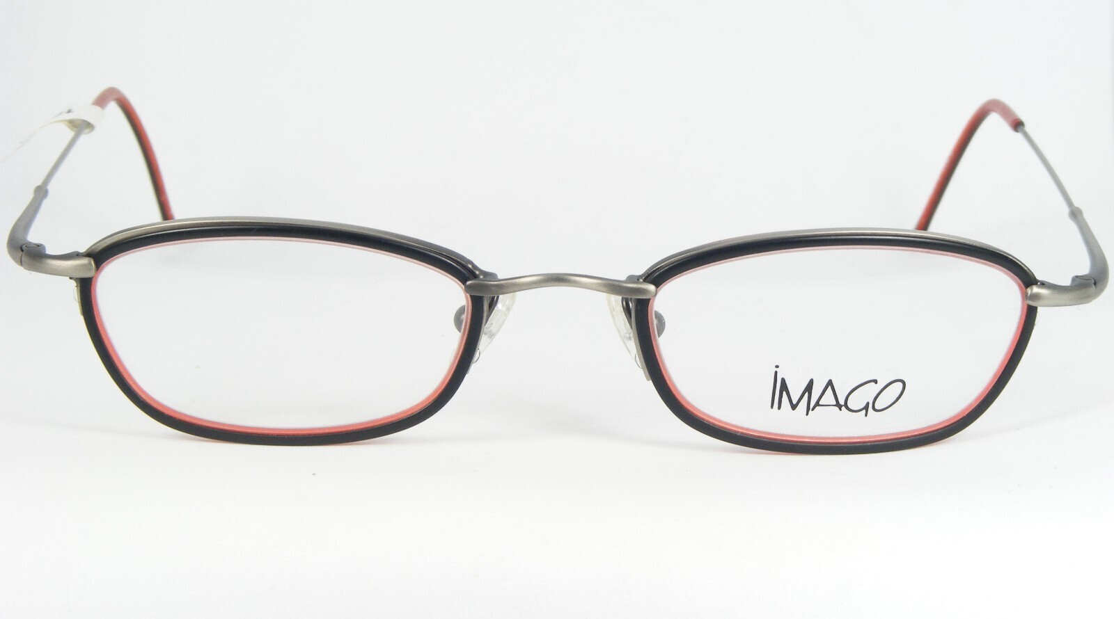 Vintage iMAGO MERIDIAN 6 NOIR /ROUGE BLUSH /ARGENT-GRIS LUNETTES CADRE UNIQUE 46-19-150mm. (G221)