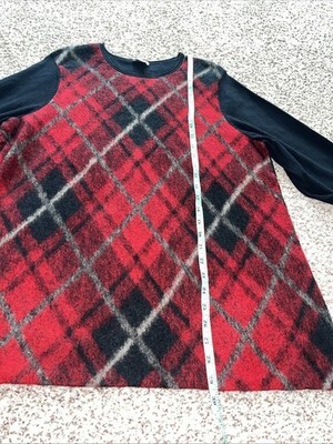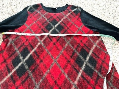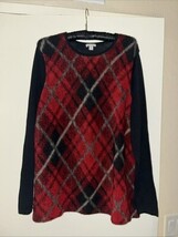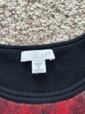 J. Jill Woman Pullover Sweater Size 2X Red Black Plaid Holiday Preppy Classic